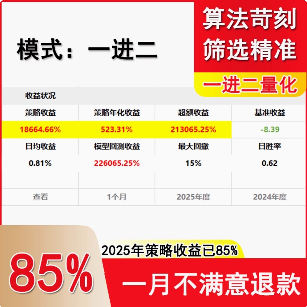 商品名称:股票一进二量化交易软件量化策略超短模式信号AI量化qmtptrade